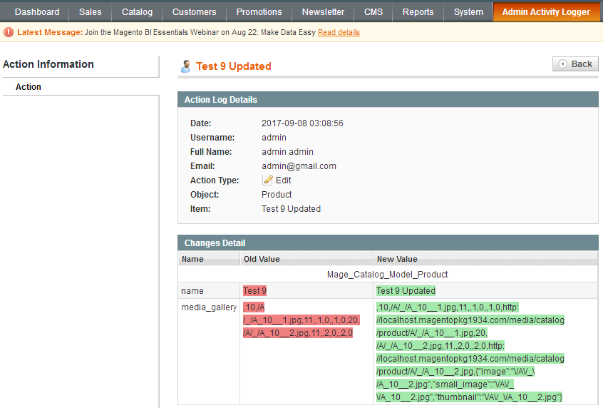 The Admin Activity Logger Magento extension enables you to track all the activities made by admin users in the backend with all details of activities performed.