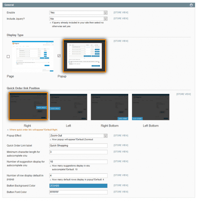 - Customizable quick order pop-up form