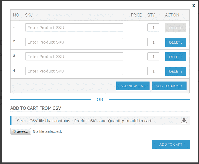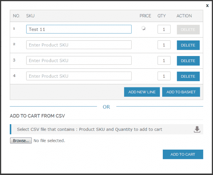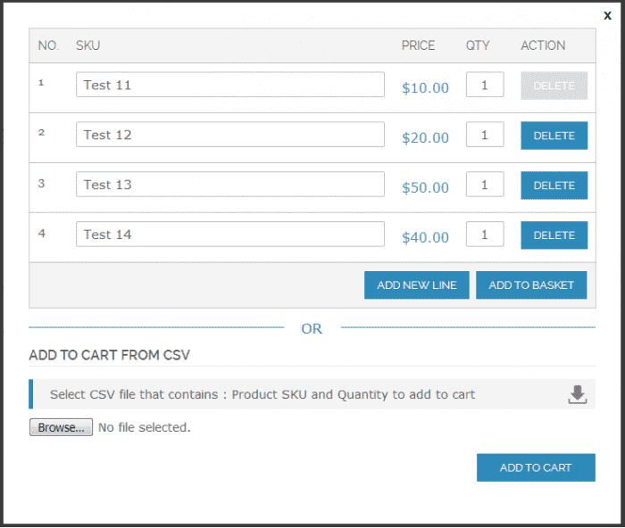 - CSV import feature for add to cart products in bulk
