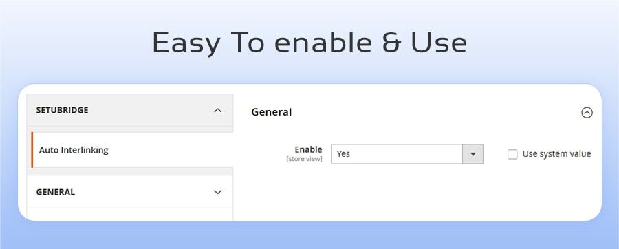 1. To use this module, go to STORE> Configuration > SETUBRIDGE > Auto Interlinking Products Tab: