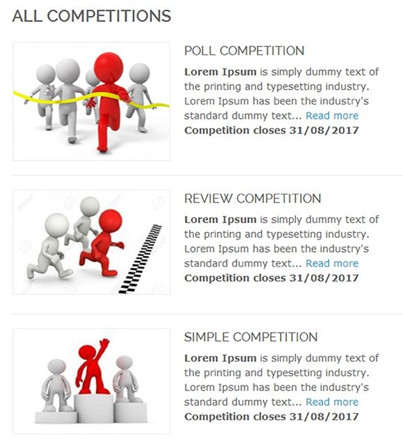 - Admin can build three kinds of competitions: Review competition, Poll competition, Simple competition