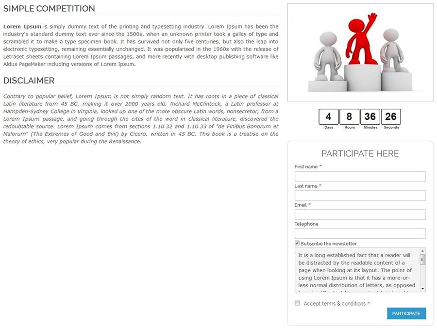 3. Simple competition: in this competition visitors/customers just need to register their email and it permits to participate in the simple competition.