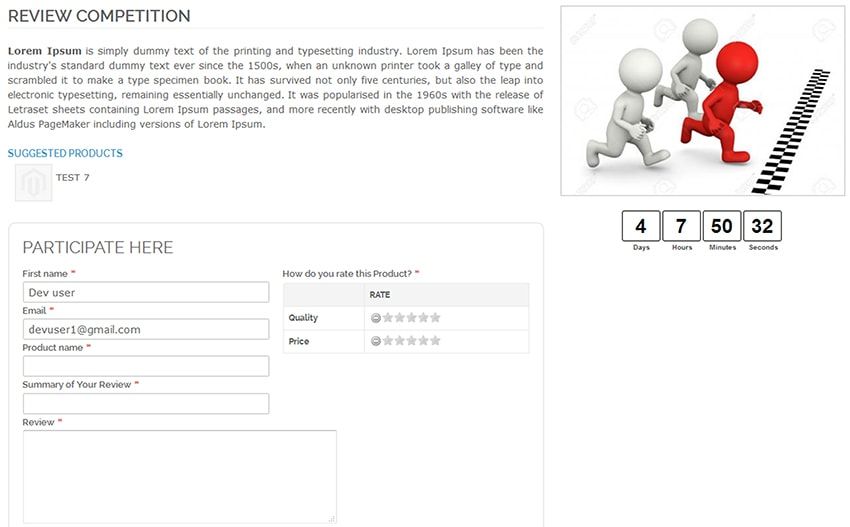 1. Review competition: with the help of this competition your visitors/customers can submit a review of any product and be able to participate in the review competition)