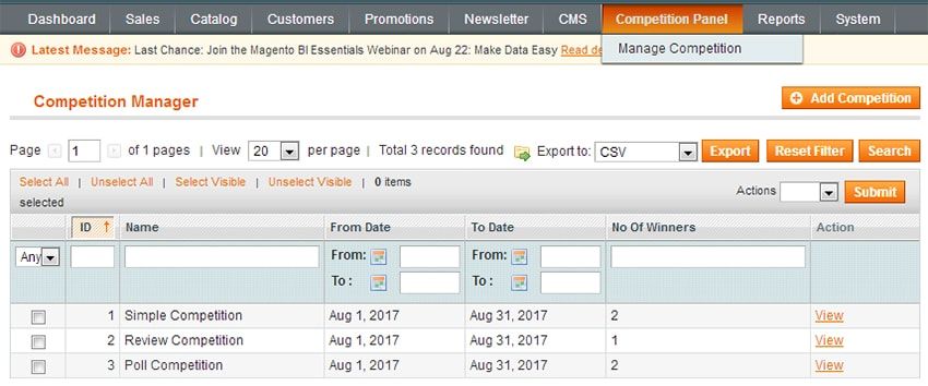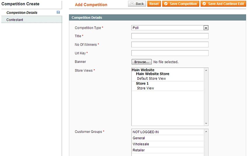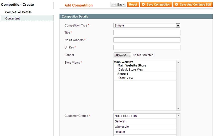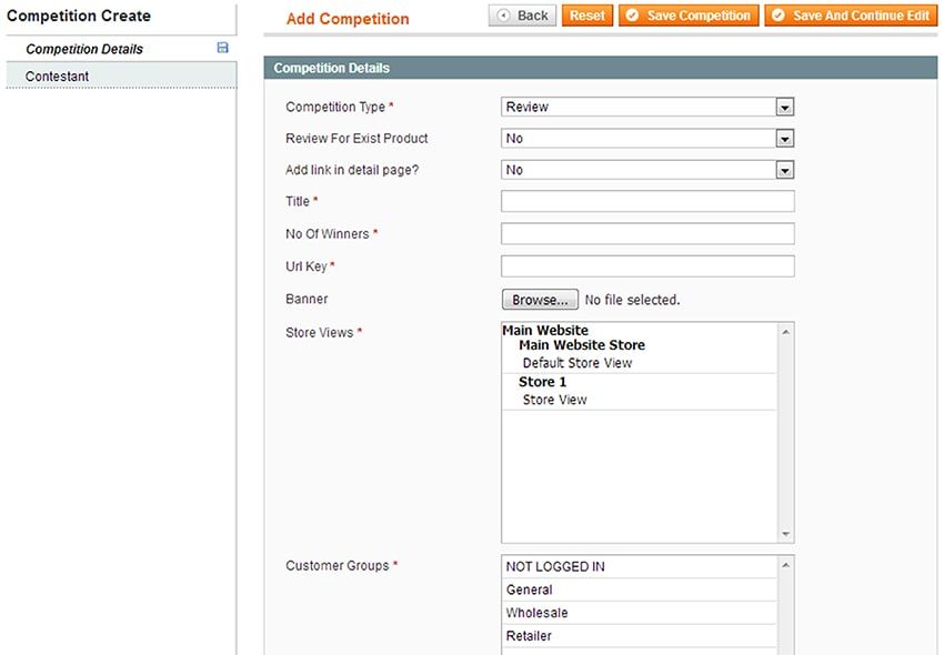 Our competition panel extension allows you to build your own competition. This extension supports multiple stores, hence you have numerous choices to build competitions of your own for different stores.