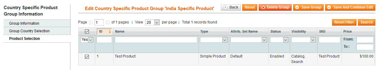 Country Specific Products Magento Extension