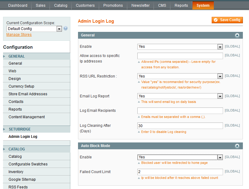 Admin login log extension prevents your website from intensity attacks, the main purpose of hackers is to access your store backend and steal important information. This extension adds security feature by which admin can block IP addresses trying to hack backend office or downloader folder. If the several logins attempt failed by any Ip address, it provides instant critical security notification to admin.