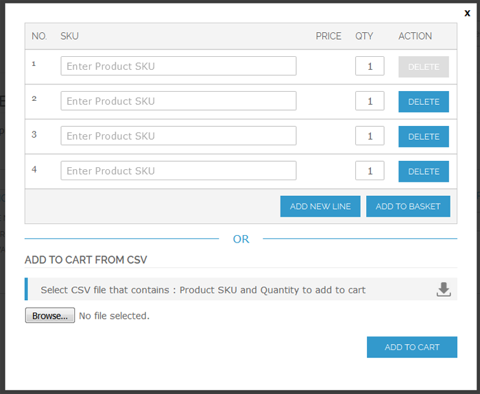 Additionally, this allows wholesale customers to import CSV file to add to cart bunch of SKUs. Also, the store owner can display various data about their products including a name, SKU, price, quantity and subtotal.