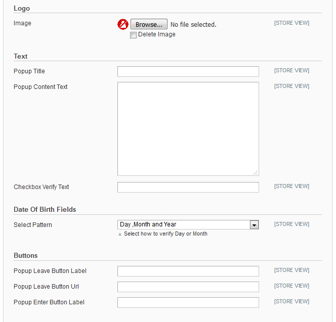 - Age Verification Pop-up Extension in frontend, Age Verification link - this label will get change from backend, Pop-Up screen asking user to verify their age by entering birth day, month & year.