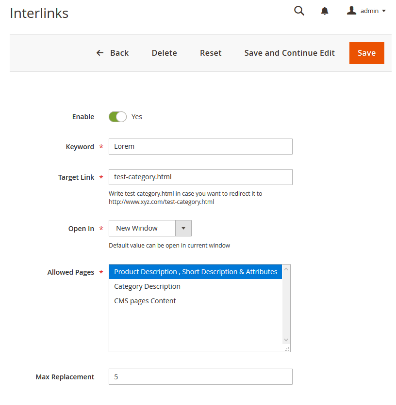 - Manage Auto Interlinking keywords & URLs from the backend