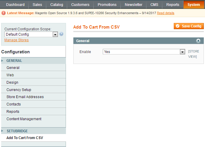 - Here is a configuration option to Enable/Disable Bulk Order By CSV Upload extension for Magento 1.