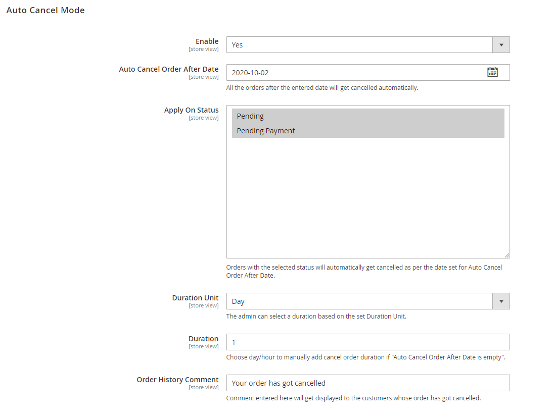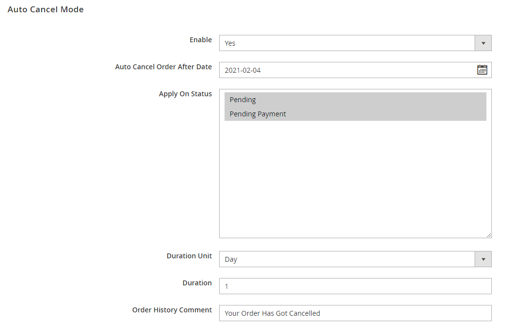 - Target order status and set an auto-cancel date