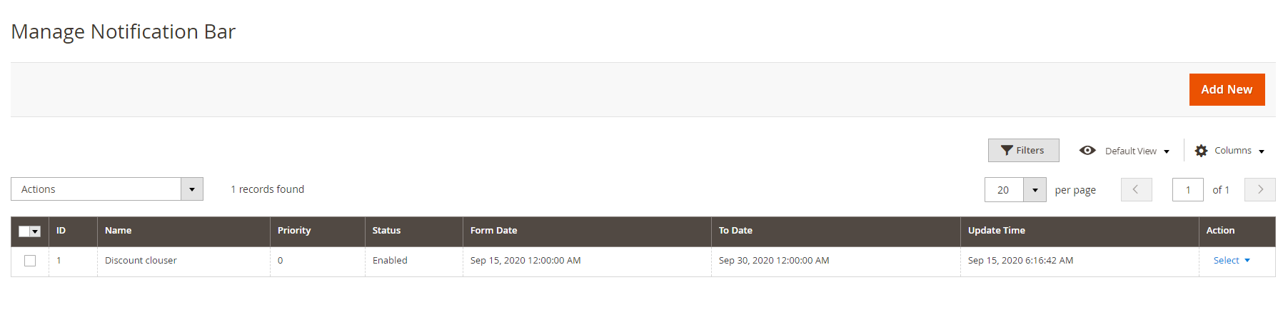 - Manage Notification Bars: Admin can easily manage all configured notification bars in grid format at the back-end.