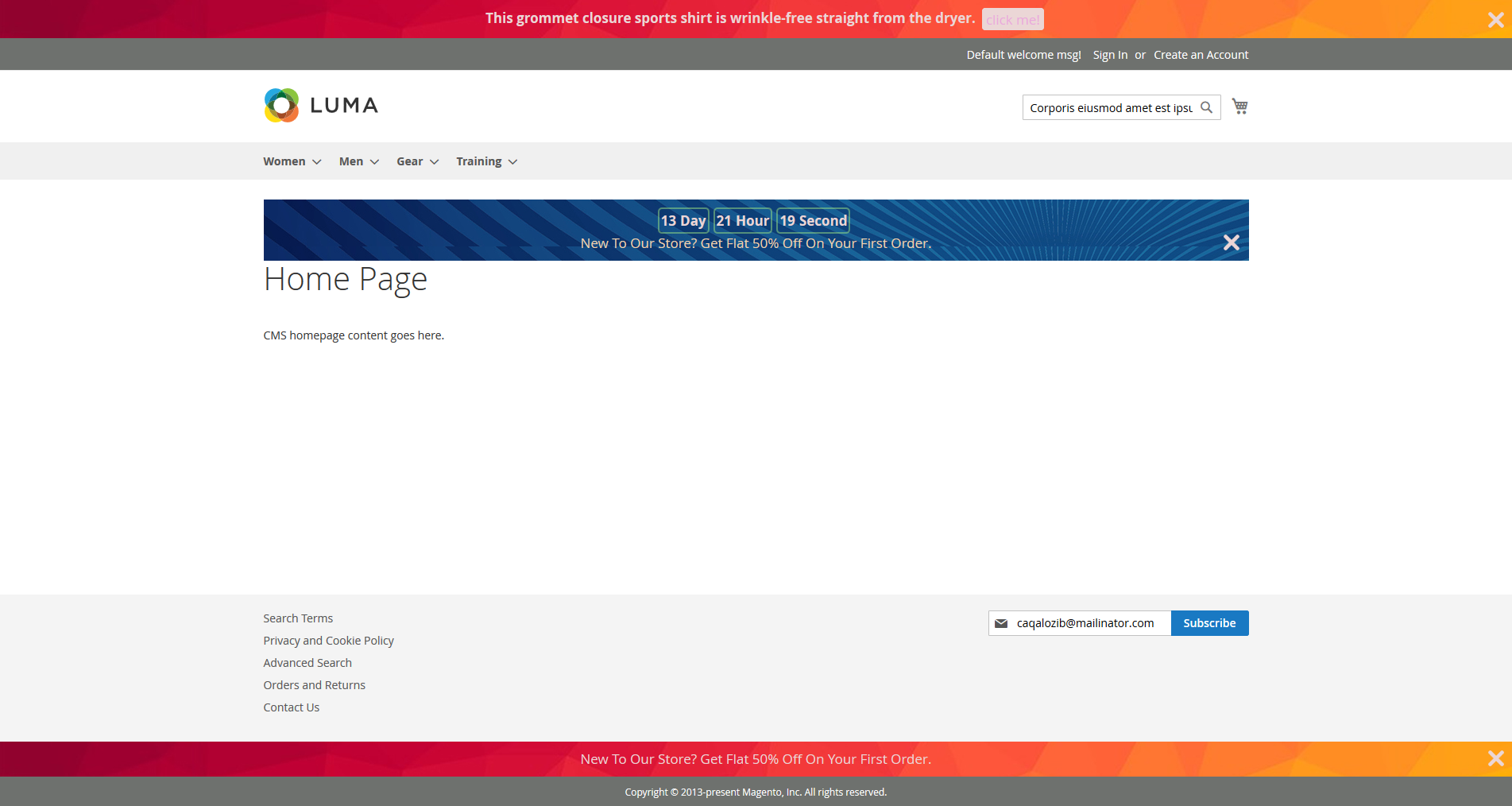 The promo banner module for Magento 2 offers admins to design, configure, and display various promotional bars with different messages at the same minute for specific/all pages. Admin can add call-to-action texts like buy now, know more, etc. and attach relevant links to redirect interested visitors to the linked page. Notification bars can be designed using custom text content, font family, text color, background color, background images, URL text, URL background color, etc. The extension offers an inbuilt WYSIWYG editor to design a quick and fast notification bar. The admin can schedule start and end dates to automatically start & stop displaying notification bars from the admin panel.