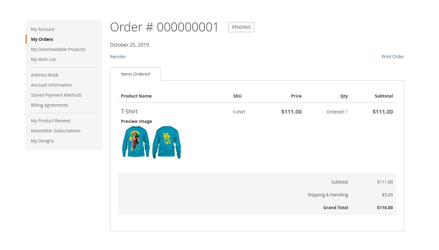 - After ordering the personalize product, the users can view it from their My Account> My Order page.
