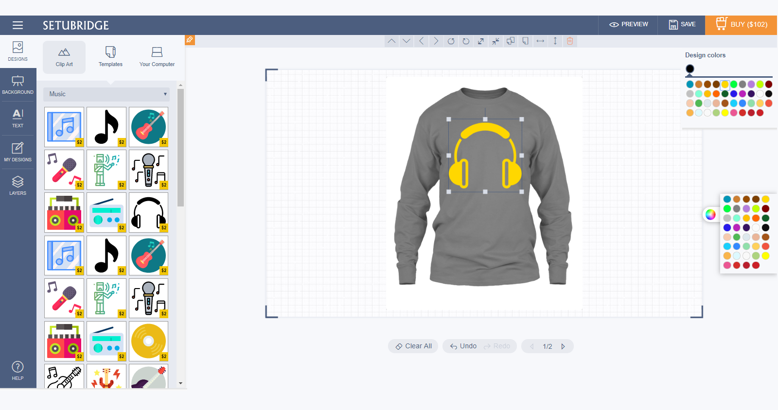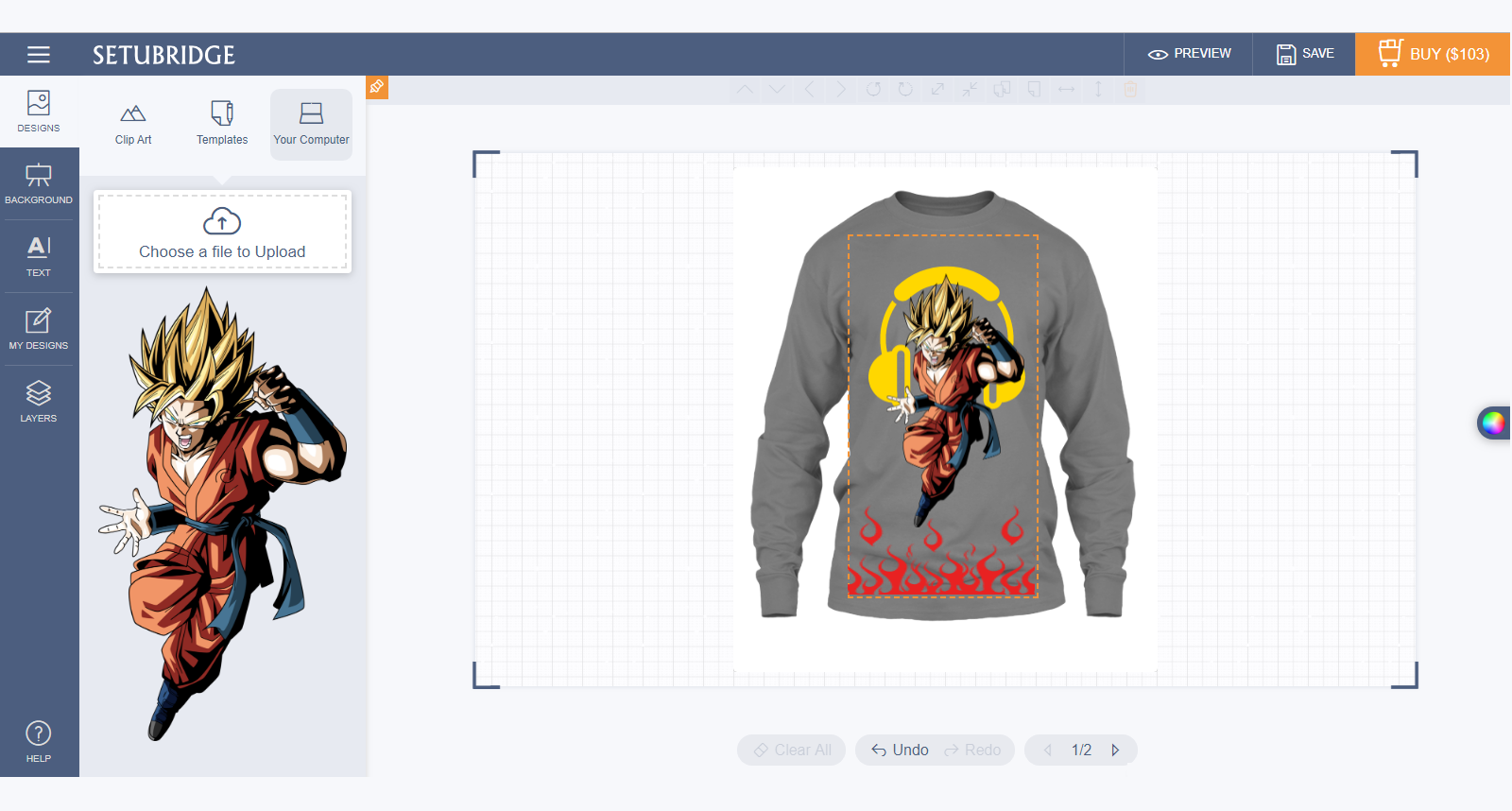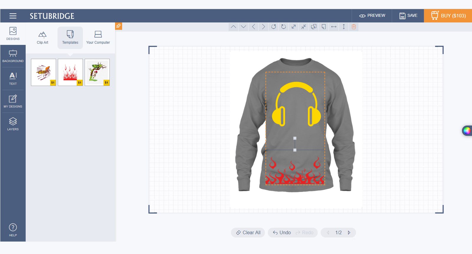 - User can preview their designs directly from the design page as well as shopping cart page.
