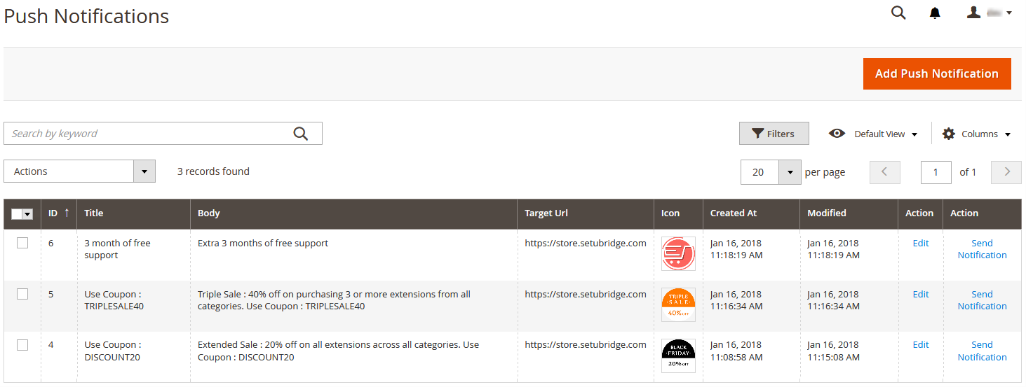 - Admin can generate push notification by using given configurations.