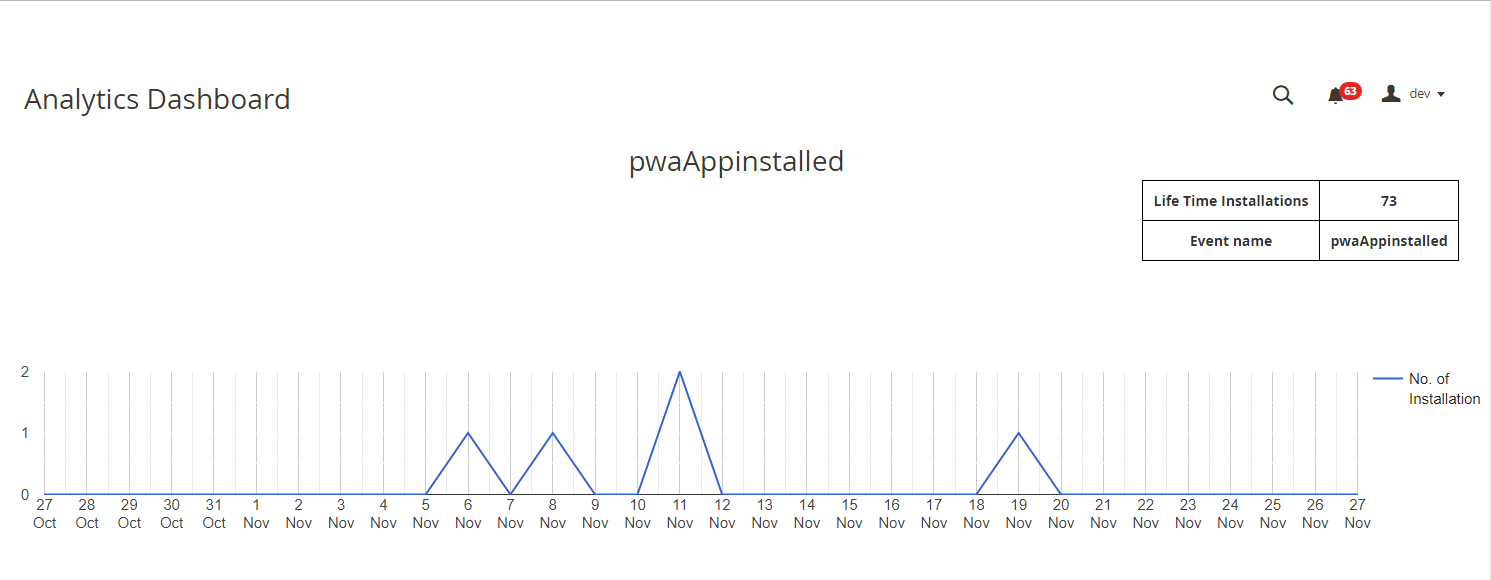- PWA analytic dashboard which gives you a live event tracking data visually.
