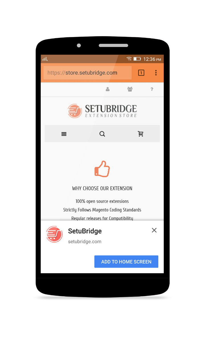 Progressive Web Apps for Magento apply modern web capability to deliver an exciting app like experience on the mobile web to your users. It develops from a browser tab and makes pages more immersive with a low friction user experience. It is a web technology for making a website which acts and feels like an application. A user can launch Progressive Web Apps same as a native application regardless of browser choice. More specifically, when the customers visit your site they can add PWAs to their home screen just one click. Once open from the home screen, it can even hide the browser UI controls and appear as an app. For users, they don't need to go app store for either installation or updates.