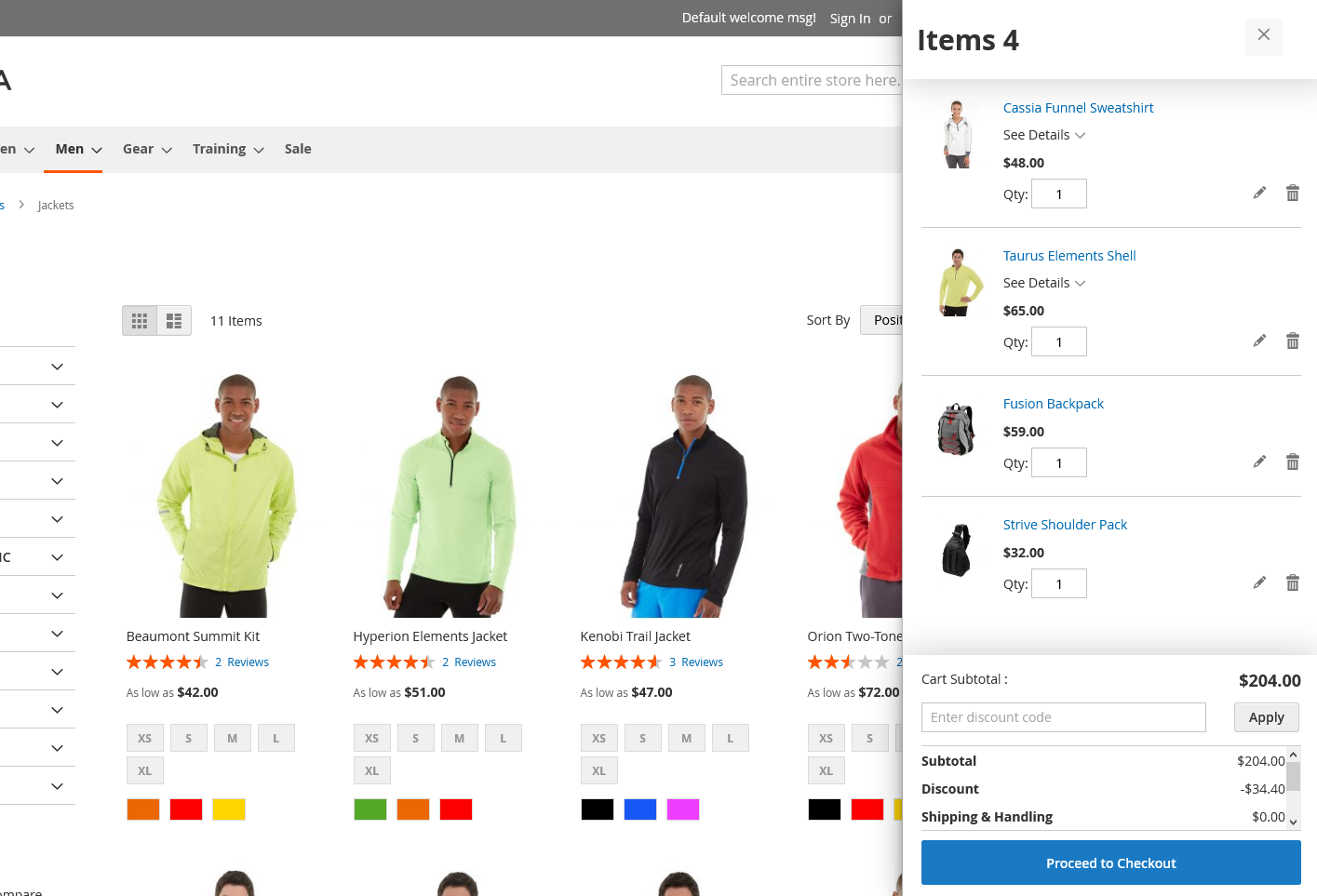 In the mini cart, customers can select the number of quantities they want of the product, apply coupon codes, and proceed for quick check out. The mini cart displays all the necessary information needed to place an order like purchase product name, product image, quantity, cart subtotal, application of coupon codes, taxes, and grand subtotal.