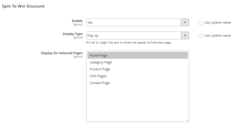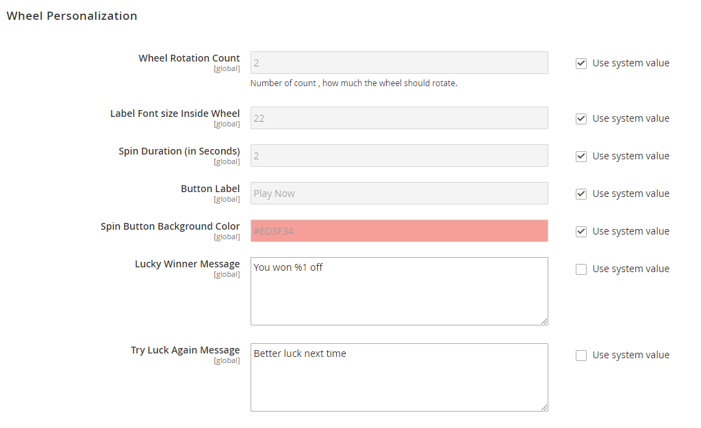 Spin To Win Discount extension helps you to display a spin wheel for your store visitors and gives a surprising discount on spinning the wheel. This extension helps store owner to get massive traffic to a store by attracting customers to grab the surprising discounts. Hence, this extension works as a marketing tool for generating new sales on your store. It allows the customer to spin a wheel and if the customer wins, they'll get the discount coupon code.