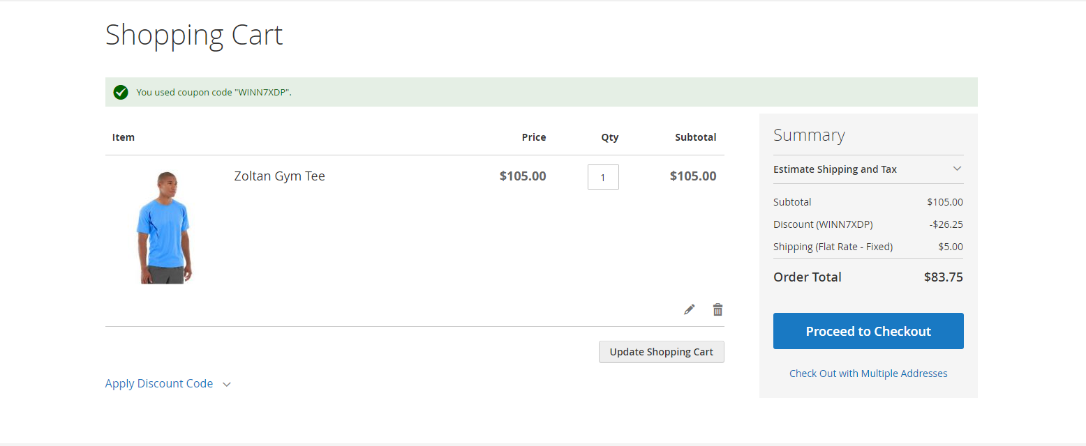 - Apply the won discount coupon on the shopping cart.