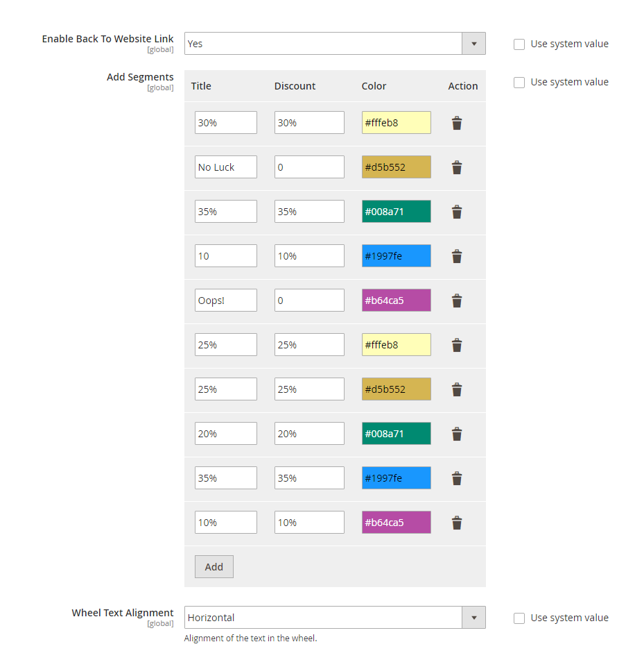 - Customizable number of wheel segments and offers to be shown on it