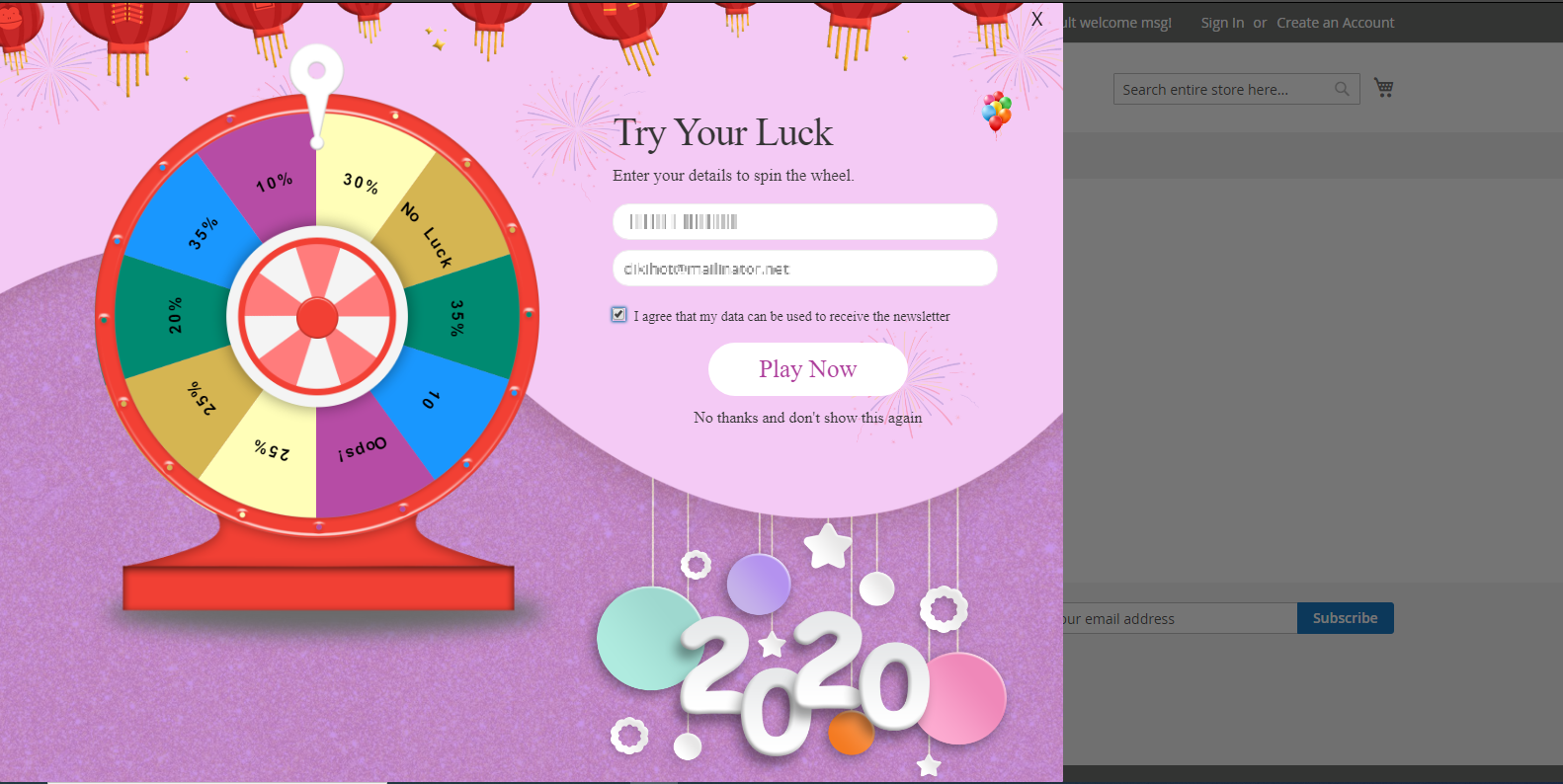 - Users will get the email with coupon code if they will win the "spin to win" game.