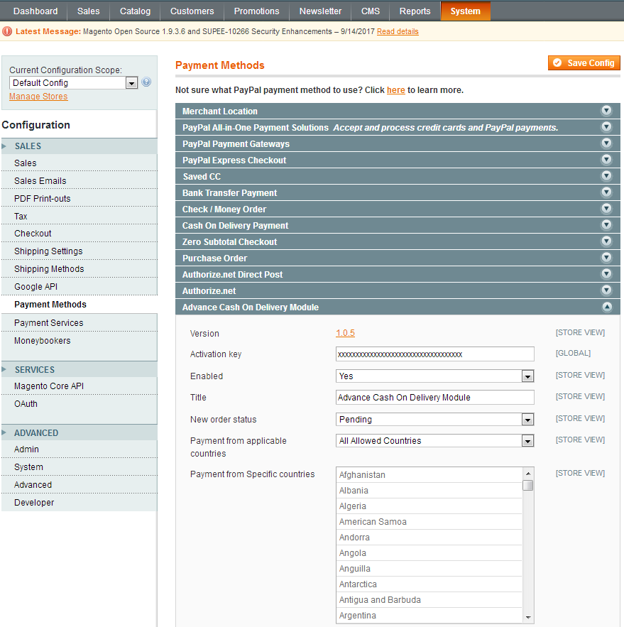 - Here is a configuration option to Enable/Disable Zipcode Based Cash on Delivery extension.