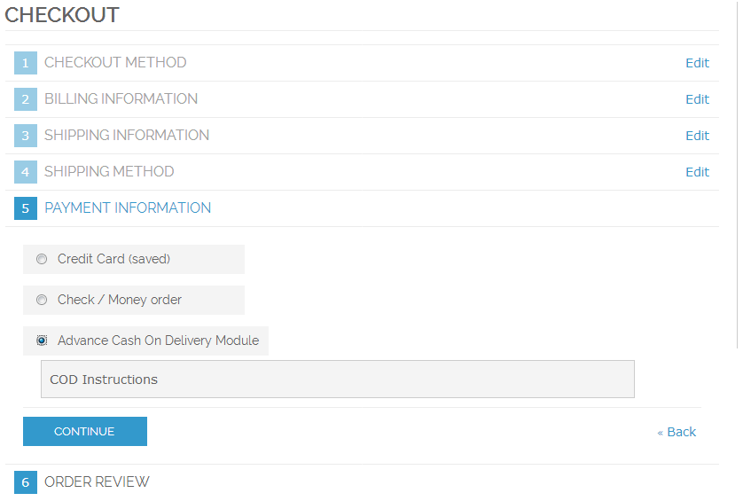 - Admin can manage set of countries where Cash On Delivery method is available.
