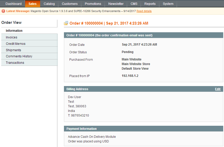 - Backend order status invoice,shipment to display this mrthod