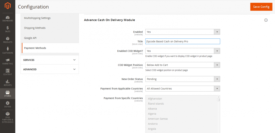 - Allow cash on delivery method to the specific country from backend