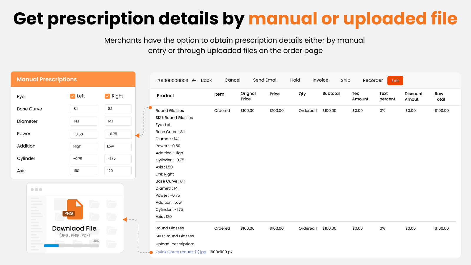 - Ordered Prescription Preview on the Cart, Checkout & Order View Pages