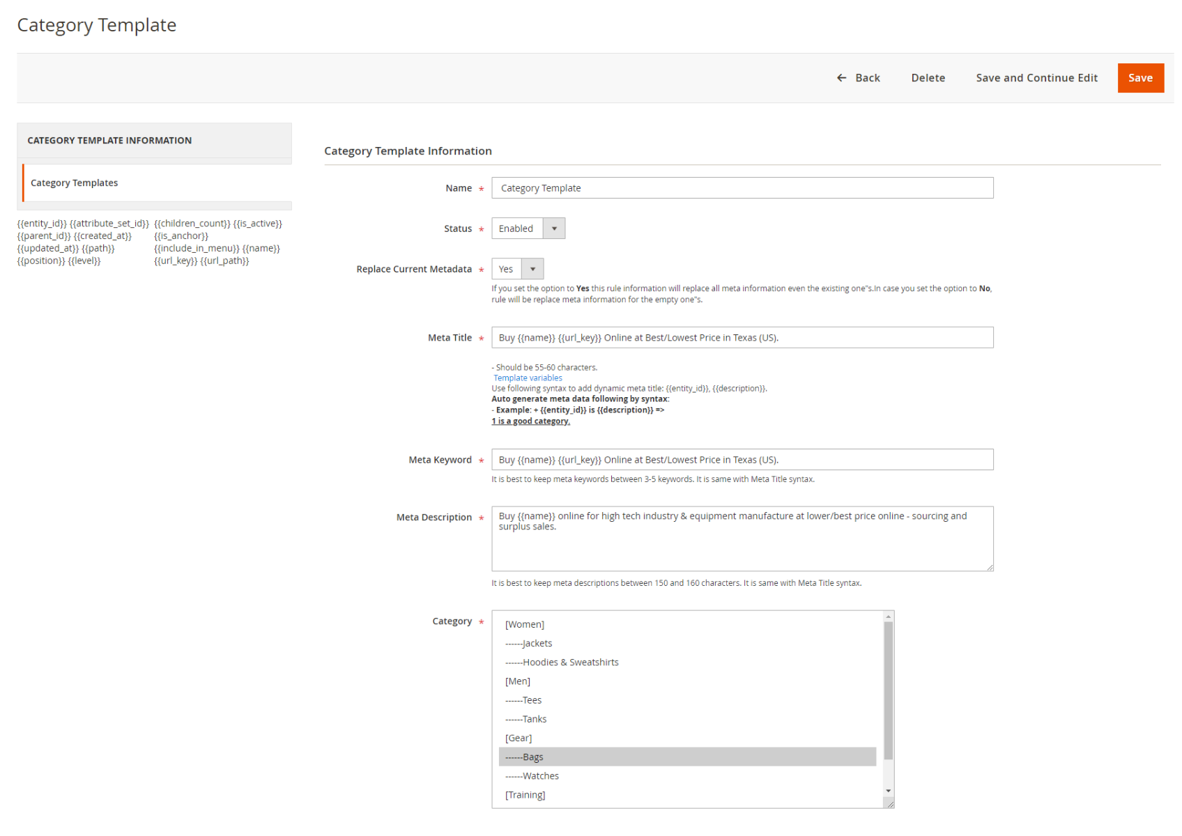 The SEO meta template magento2 extension allows managing and updating a massive amount of meta tags of various pages and products at once. SEO meta tag template extension offers admin to generate meta tags like meta titles, meta descriptions & meta keywords for all product pages, category pages & CMS pages.