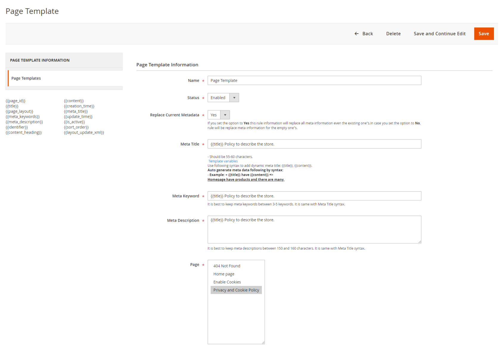 In addition to this, the plugin facilitates the creation and add multi meta templates using various attributes. By using multiple and different patterned templates for the product, category, and CMS pages, the admin can boost websites' performance for SEO’s ranking. The extension offers flexible template management with enable/disable options.