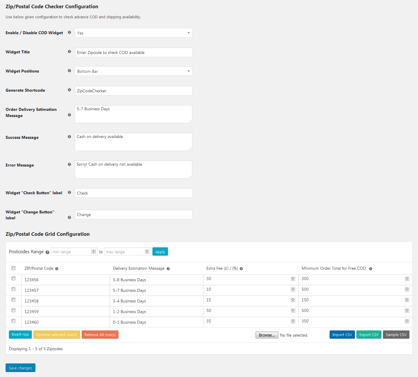 - Admin can manage COD Fee separately for each Zipcode/Postcode using CSV import feature