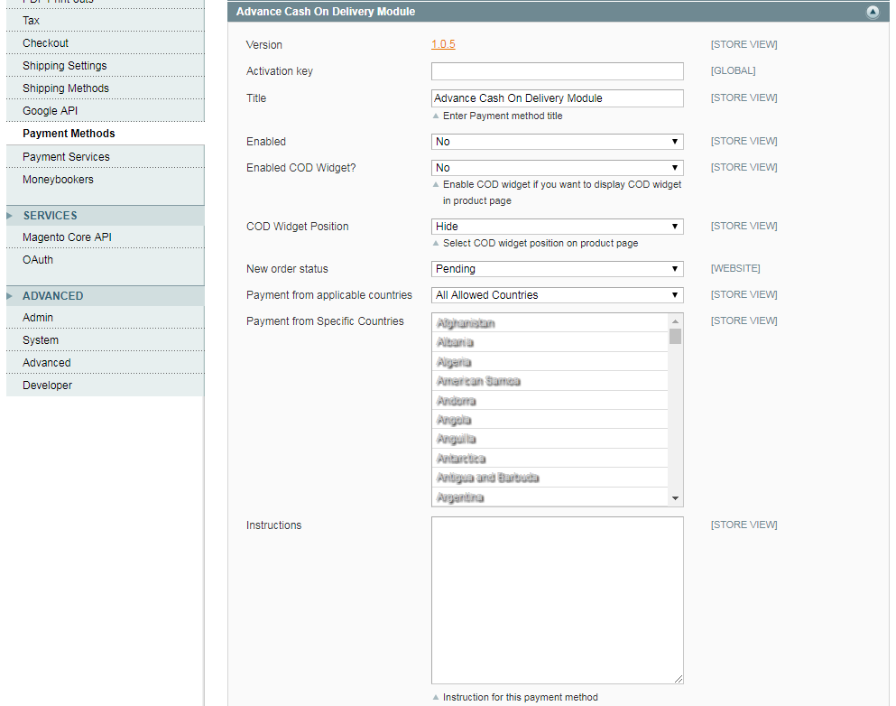 - Allow cash on the delivery method to the specific country from the backend