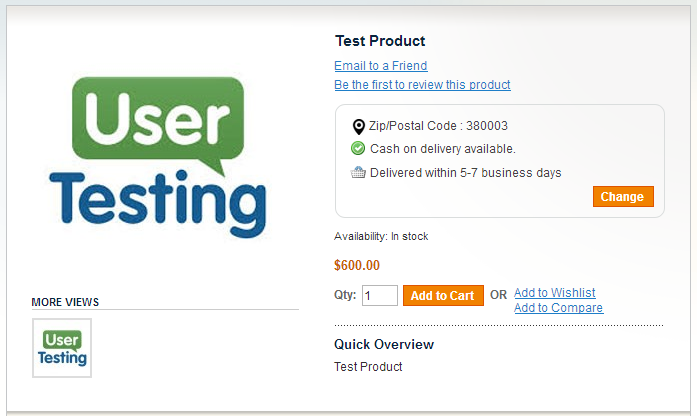 A mobile responsive postcode/zipcode availability checker tool on the product detail page will enhance the user experience by helping the user determine whether or not cash on delivery is available to specific postcodes entered by the user. The Magento cash on delivery checker widget will display an 'estimated delivery time' message for eligible postcodes, which can be configured for each Zipcode/Pincode/Postcodes.