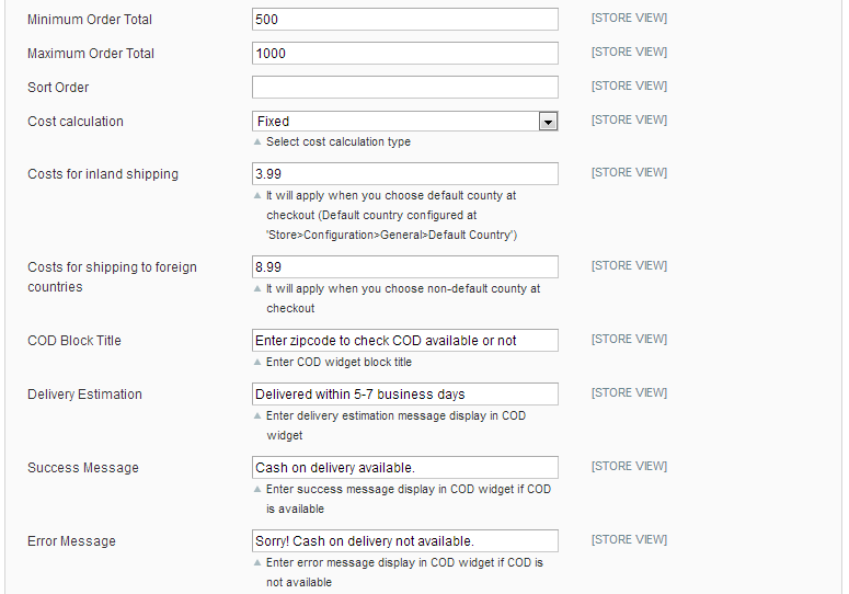 - Batch import for COD eligible zip codes/postcodes using CSV upload feature